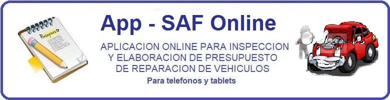 Nuestro nuevo Servicio Online para Presupuesto de Reparaión e Inspección de Vehículos a traves de Teléfonos y Tablets. Dirigido a empresas que prestan servicios de mantenimiento y reparación de automóviles. Descarga AQUI la Aplicación de Inspección de Vehículos para Sistemas Operativos Android. Los Teléfonos Iphone y demas Sistemas Operativos pueden utilizar la Aplicación directamente desde el Link del menu superior [PRESUPUESTO EINSPECCION] en la Página de Inicio. Usar con Google Chrome 100% Compatible.